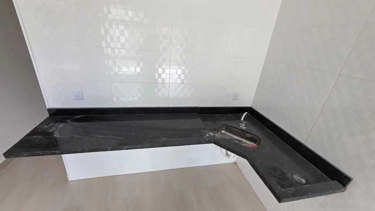 A sala possui sanca de LED e painel de TV em porcelanato, oferecendo um acabamento moderno e elegante. A cozinha conta com pia de mármore e ótimo espaço para organização. O imóvel dispõe ainda de um banheiro completo, lavanderia com tanque e garagem para um carro e uma moto.