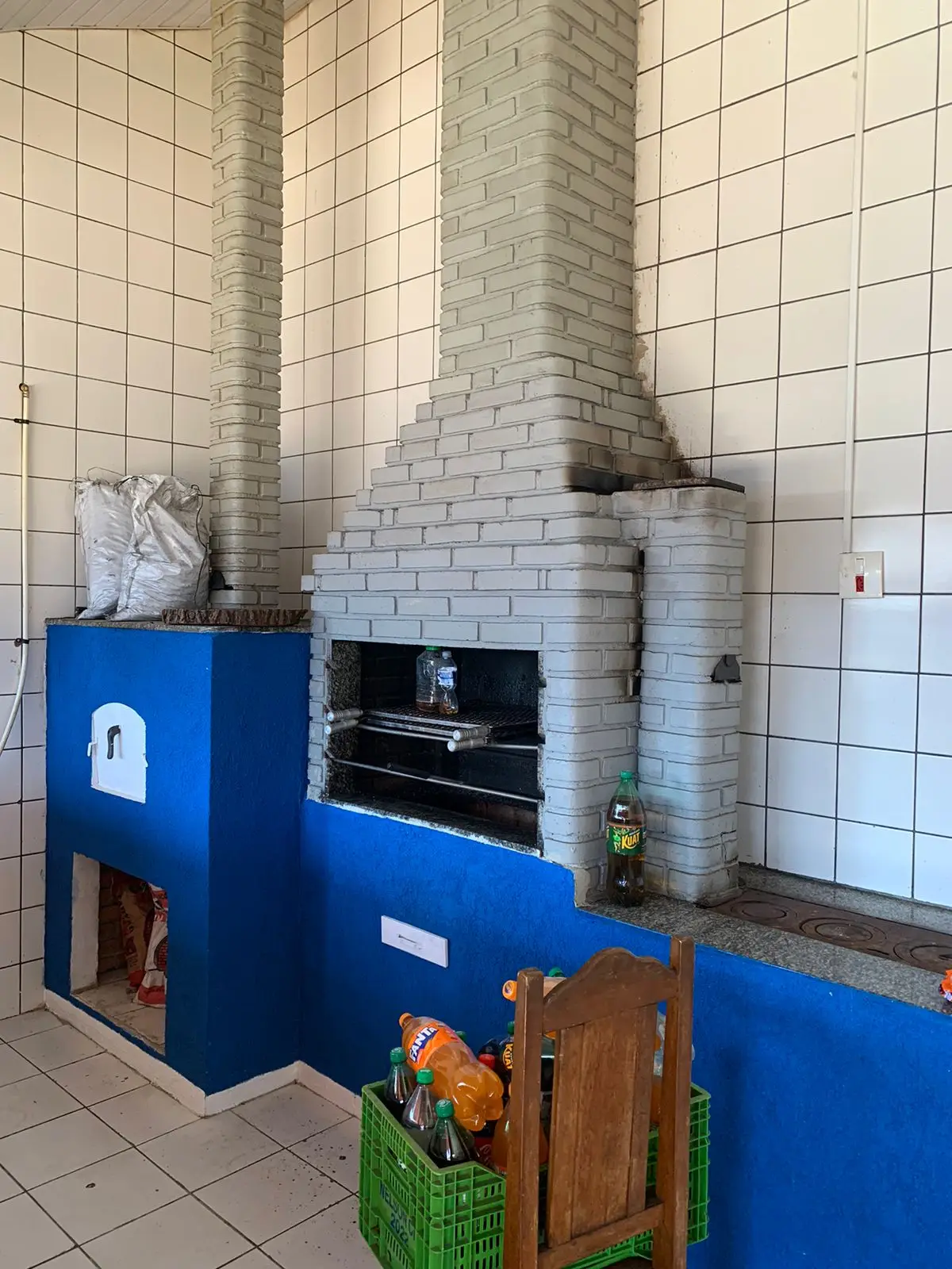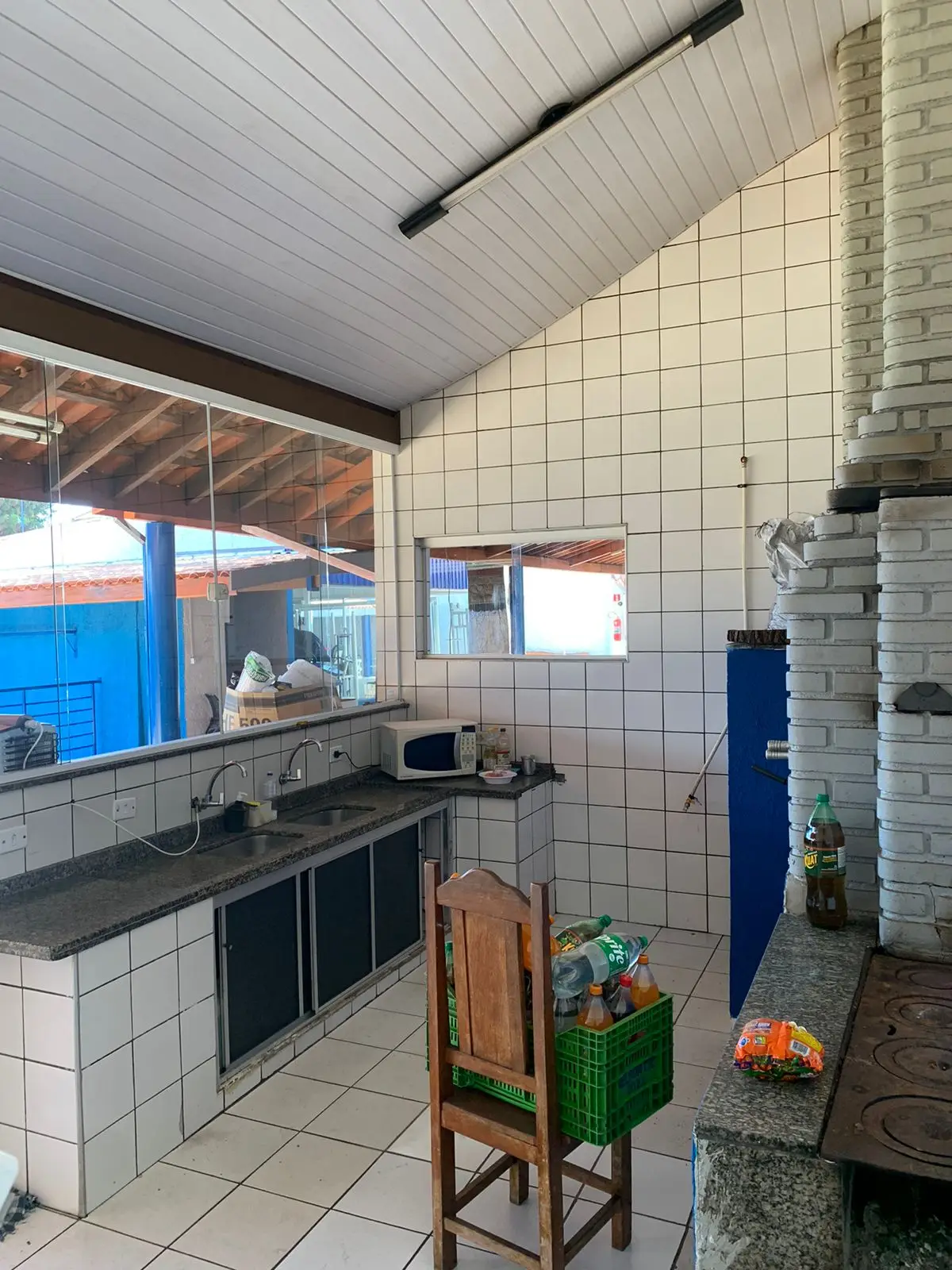 Cozinha com churrasqueira e forno a lenha